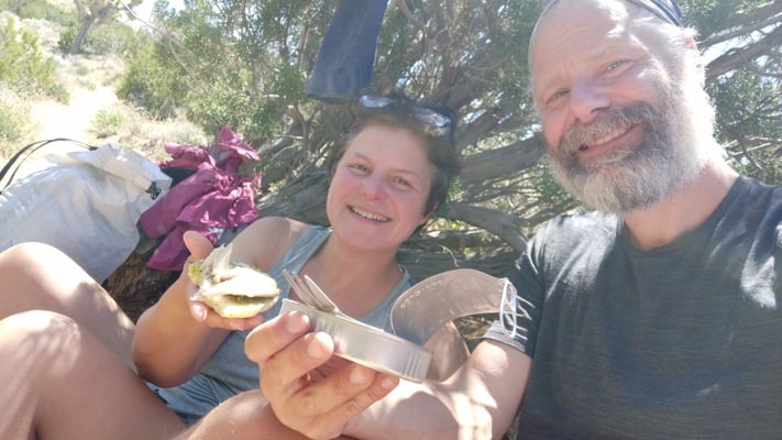Gegen 17:30 Uhr wurde Sabine auf dem "Gipfel" mit Tee empfangen, Olli trank eine heiße Schokolade. Kurz vorm Weitergehen kamen drei Belgier vorbei, die sich freuten, als sie feststellten, dass Olli niederländisch spricht. Sie haben nur einen Monat Zeit und sind bei Tehachapi in den Trail eingestiegen. Wollten dann noch die Sierra machen, wenn der Schnee das zulässt. Wir sind bis 22:30 Uhr gelaufen und konnten noch 12 km "gutmachen". Cowboycamping bot sich an und Nudeln waren mal wieder dran.