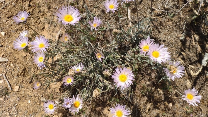 Sind erst nach 11 Uhr weggekommen, da wir unseren Blog noch aktualisieren mussten - und nicht wussten, wie lange wir noch Empfang haben würden. Es war recht heiß. Haben nach 2 km die Highway 58 erreicht, der PCT verlief für mehrere Kilometer dort entlang, bevor er dann Richtung Gebirge abbog. Dort begann der Anstieg, von 1.000 auf 1.900 m, verteilt auf etwa 10 km. Haben ziemlich bald eine lange Mittagspause eingelegt, da es anstrengend war. Danach liefen wir getrennt weiter, etwa eine Stunde auseinander, da Sabine noch einige Mails schreiben wollte und es, wie wir festgestellt haben, ohnehin leichter ist, einen Anstieg alleine anzugehen.
