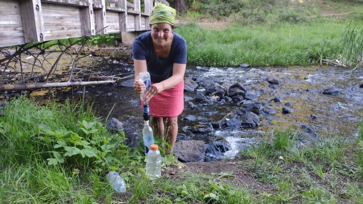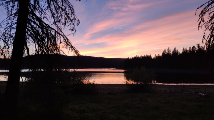 Haben gegen 21 Uhr einen tollen Platz am Hyatt-Lake gefunden und Nudeln mit getrocknetem Lachs, Oliven und Käse gegessen. Leider sehen die vielen Moskitos Sabine als ihren Leckerbissen an: Sie ist trotz Spray und Gesichtsmoskitonetz von Stichen übersäht. Sind 25 km gelaufen, das war in der Hitze und mit den vielen Interviews und Gesprächen eine gute "Ausbeute".