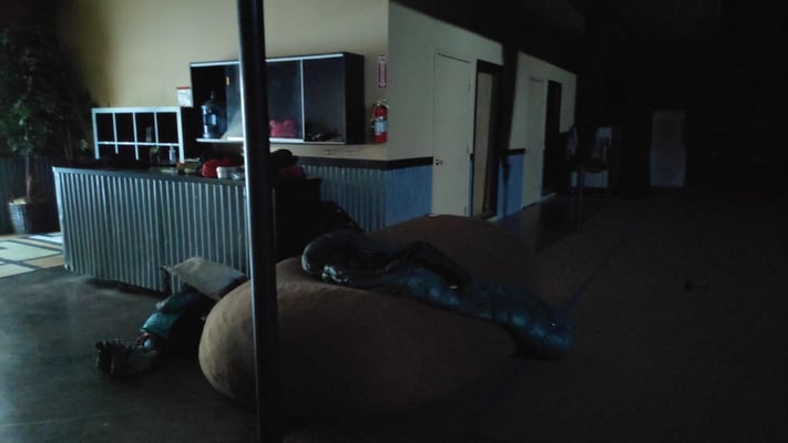 Am zweiten Abend kommt eine Jugendgruppe um Morgan und Amanda "we have our youth here every Wednesday". Hat Larry wohl vergessen zu sagen. Ich hatte mich in der Küche total ausgebreitet und Morgan und Murphy, ein Vater, schnippelten Tomaten, Zwiebeln, Gurken und Paprika zwischen meinen SD-Karten und dem Stand-alone-Kopiergerät, bereiteten Sour Creme und Guacamole vor, brieten Hackfleisch an. Hund Tucker interessierte sich für Rucksack und Stöcke. Amanda war bei den Kids in der Halle. Ich räumte schnell alles zur Seite. Sie hatten gefüllte Tacos auf dem Speiseplan und luden mich ein. Das war toll, ich wollte nämlich gerade zur Pizza-Factory laufen, was ich dann sein ließ. Inzwischen kamen Hänsel und Gretel, zwei weitere Hiker aus Deutschland, an der Halle an, aßen auch mit. Das Geschwisterpaar Astrid, 25, und Lowik, gerade aufm Trail 18 gewoden, waren echte Southbounder und wollten bis Dezember durch sein. Die Sierra hatten sie vorgezogen, gut so, da liegt jetzt dick Schnee. Ich machte mit Morgan, 35, der nicht mehr arbeitet, und vom gesparten Geld lebt, ein Interview über was einen so antreibt. Amanda machte mit den Kids im Alter von 9-15 ein Quiz zu Halloween, manche spielten Ball. Morgan und Amanda trainieren die Kids in verschiedenen Ballsportarten. Einige Kids sprachen mich an, wollten wissen, was ich mache, einigen war der PCT ein Begriff. Ich blühte richtiggehend auf, da ich doch selbst sehr viel mit Kids und Jugendlichen arbeite und mir das offensichtlich fehlt. Später, als die Halle wieder ruhig war, machte ich ein Interview mit Hänsel und Gretel. Am Morgen kamen Bon und Ron nochmals ins Cafe, Bon hatte keinen Dienst, aber wir wollten uns nochmals sehen, sie waren auf dem Weg nach Redding, um Blutplasma für Leukämiekranke zu spenden. Ich lernte auch noch Ken, den Senior Pastor kennen. Er zeigte mir den Kirchenraum, Flügel, Schlagzeug, Mikros, volle Ausstattung. Olli wird ja nächstes Jahr in Burney aufschlagen. Ich kontaktiere ihn kurz. Ja, er sei gerne bereit, dann im Gottesdienst zu spielen, auch gerne seine eigenen Stücke. Vielleicht etwas aus der RockOper. Ken spielt Gitarre, sein Sohn Schlagzeug. Das werden wir Kris erzählen ;-))