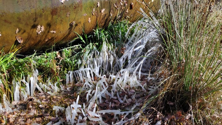 Den nächsten Tag über geht es weiter über die sonnige und windige Hat Creek Rim und Kommentare in Guthook wie "nicht mal Satan würde diese Rim hiken wollen" lassen erahnen, wie es hier im Sommer brennen muss. Mir reicht die Hitze, die ich abbekomme. Muss auch immer mindestens 50er Sonnercreme benutzen, sonst bin ich dauerrot im Gesicht, ist halt alles immer um die 2000 m hoch. Außerdem ist die Strecke wasserarm, man muss für zig Meilen das Wasser mitschleppen. Am Telekommunikationsturm mache ich Pause, trinke das letzte Wasser. Etliche Meilen später soll der Watercache 22 sein, ein Tank, den ein Privatmann unterhält, auf Spendenbasis. Der Tank ist gleich neben dem für die Kühe, von denen ich keine einzige sehe. Das Becken, in das das Wasser für die Kühe läuft, ist oberflächlich gefroren. Man sieht auch zuerst den Cattletank, da der andere hinter einem Holzzaun versteckt ist. Ein Trailregister gibt es beim Cache auch. Ich trage uns auch hier wieder ein. Habe fest vor, in Deutschland für die Weiterunterhaltung des Caches Geld zu spenden. Es ist gegen 16 Uhr, ich laufe weiter.