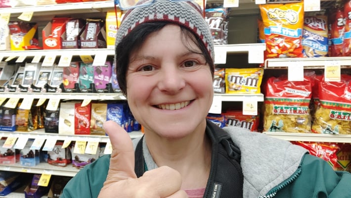 Um 17.30 Uhr (noch wird es erst um 19 Uhr dunkel) geh ich zur Tanke rüber und kaufe ein, gerade so viel, dass es mir bis Burney reicht. Gas, denn inzwischen ist auch die zweite Gascartouche fast leer, vergesse ich (das wird mir eine Lehre sein und macht mir klar, wie wichtig mir warmes Essen und ein warmes Getränk ist. Cold soaking, was etliche Hiker machen, ist überhaupt keine Option für mich). Larry, der Inhaber, bezeichnet sich als Workaholic, außer an der Tanke arbeitet er seit 32 Jahren für denselben Chef als Securityman. Ich trinke zum Abschluss noch 2 Midnight Oil Kaffee - super gut, er lässt mich in seinem Büro sitzen. Es liegt ein Packen Geldscheine vor mir. Ewig freut mich dieses Vertrauen. Es ist inzwischen kalt draußen. Je nachdem, wo man in Nordkalifornien läuft, kann der Temperaturkontrast sehr stark sein ... Auf dem Klo putze ich mir mal gleich wieder die Zähne, ihr wisst, jeden Milliliter Wasser für seine Angelegenheiten trägt man ...