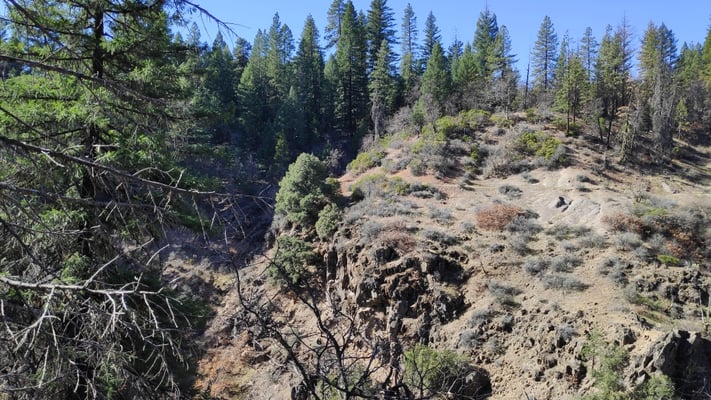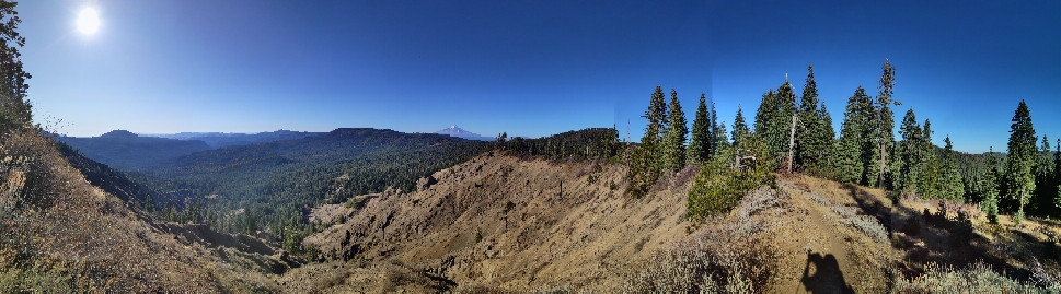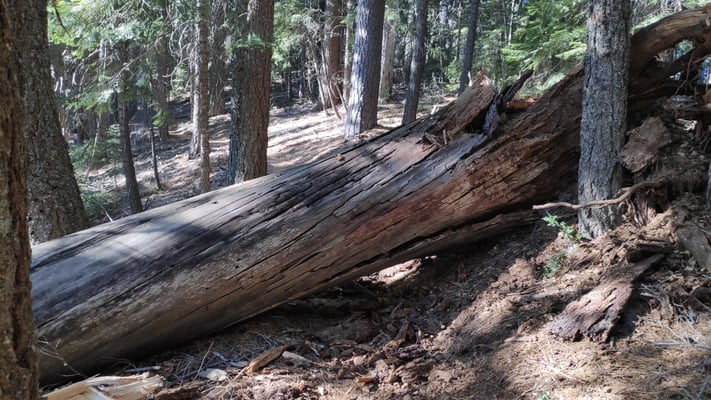 Am Tag, an dem ich Dunsmuir erreichen wollte, hatte ich durch die vom Vortag hängen geblieben Kilometer und nen Rechenfehler statt 16 km noch 27 km nach Dunsmuir. Ich wollte tags zuvor eigentlich 30 Meilen, also 48 Kilometer, schaffen, aber nach 41 km war Schluss. Stundenlang Steigung, hab mir die Elevation-App wohl in zu kleinem Maßstab angeschaut 🤔 (Olli kennt das), dachte es geht früher runter. Es gab etliche Passagen, wo der Trail überwuchert war oder zum Abhang hin ausbröckelte und ich wegen Abrutschgefahr langsam machen musste.