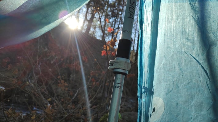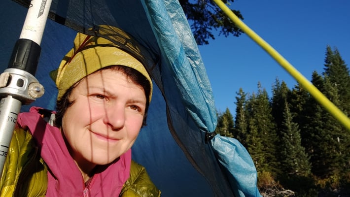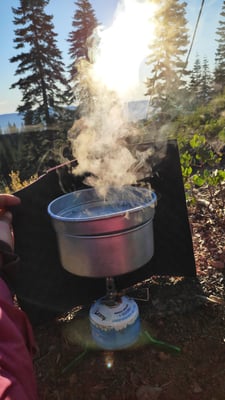 Morgens 8:30 Uhr wache ich bei dünner Eisschicht im Zelt innen auf. Ein Squirrel fiept fordernd, dann pfeifend, dann ist es weg. Als ich das Wasser aus einer der Wasserflaschen, die ich jetzt immer im Zelt habe, in den Topf gieße, bildet es oberflächlich eine Eisschicht im Topf!!