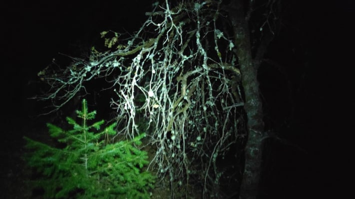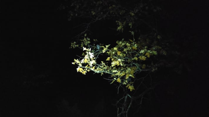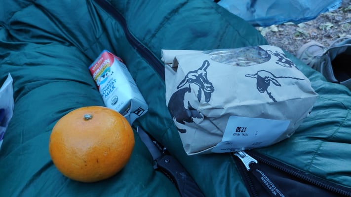 Das Zelt habe ich ca. um 0 Uhr aufgebaut, Cat Stevens dabei gehört und spicy Erdnüsse und Karotten als Vorspeise genossen, dann Uncle Ben's Reise mit Edamame (Sojabohnen) gegessen, den ich mit kleinen Stücken Swiss Cheese aufpeppte, Cadbury Milk Chocolate und nen Schluck Kirschwasser gab's hinterher. Inzwischen höre ich im Zelt oft die Christmas Songs in der Interpretation von Roberta Flack. Ein größeres Tier schreit ein paarmal recht heftig, naja ist ja auch Halloween. Ich überlege, was ich mache, wenn das Schreien, also das Tier näher kommt. Habe Gaskocher, Feuerzeug und Messer parat. Das Geschrei kommt jedoch glücklicherweise nicht näher.
