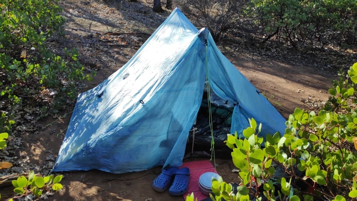 Erst mal gibt es Kaffee und den Rest der Schokolade. Der Sekundenkleber hat die Brille nur zwei Tage zusammen gehalten, die Bruchstelle ist wieder offen und das Plastikglas droht heraus zu fallen. Ich repariere die Brille mit dem elastischen K-Tape. Dann Streckencheck, nach 1,5 Meilen, 9,7 Meilen und 17.3 Meilen vor der angestrebten Campsite bei 20 Meilen gibt es gute Wasserstellen. Die Elevation soll hoch von 3100 auf 5400 feet, also 2300 feet = 700 Höhenmeter. Es ist kalt und ich mache im Zelt meine Notizen, während die Sonne weiter rauskommt. Die Straße ist zu hören. Die Sonne setzt sich 9:44 Uhr durch. Ich esse Brot mit Salami, trinke heiße Schokolade. Laut Forecast soll es heute 21 Grad Celsius werden.