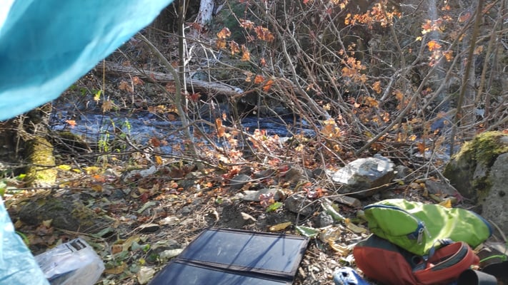 Nach Dunsmuir ging es dann durch den Wald in Serpentinen runter, von 4600 auf 2100 feet, wieder ca. 800 Höhenmeter. Es ist dunkel, zw. 18 und 19 Uhr. In Burney hatte ich Kellyfisch von Crossroads, schon geschrieben, ob sie mich an der Straße nach Dunsmuir abholen und die dreieinhalb Meilen in die Stadt fahren könne. Ja, ich solle mich dann, wenn es so weit ist, melden, ich hätte am Hang nach Dunsmuir runter auf jeden Fall Empfang. Crossroads ist eine kleine "Hikerinsel", 1,5 Meilen vom Trail entfernt, zwischen da, wo man an der Straße nach Dunsmuir rauskommt (Interstate 5) und Dunsmuir selbst, mit Platz für bis zu 20 Hikern, Außendusche, Außenküche, paar Schlafplätzen in der Garage oder in einem kleinen Häuschen, einem Trailer - dem Aquarium -, einem Lagerfeuerplatz, geringe Kosten mit Frühstück. Sie hatte seit 27. Oktober geschlossen, bot aber noch an, auch im November Rides nach Dunsmuir zu geben, so stand es in Guthook.