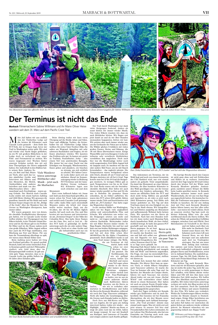 7.-18. September, Tag 161-172 PCT-km: 1414, gelaufen: 2919 km Ein kurzes Lebenszeichen von uns aus dem Vermillion Valley Resort am Edison Lake! Haben heute nach 11 Tagen und ca. 280 km wieder ein Stückchen Zivilisation erreicht. Hatten uns noch in Kennedy Meadows entschieden, nicht in Lone Pine oder Bishop rauszugehen, um nicht wertvolle Zeit durch Aus- und wieder Einstiege für den Resupply zu verlieren. Mussten allerdings 11 Tage mit unseren Essensvorräten auskommen, eine Herausforderung,...